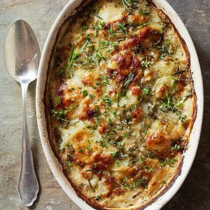 Bake, covered, for 1 1/2 hours. Increase temperature to 400 degrees F. Bake, uncovered, for 15 to 20 minutes more or until potatoes are tender and top is golden brown. Makes 24 1/2 -cup servings.