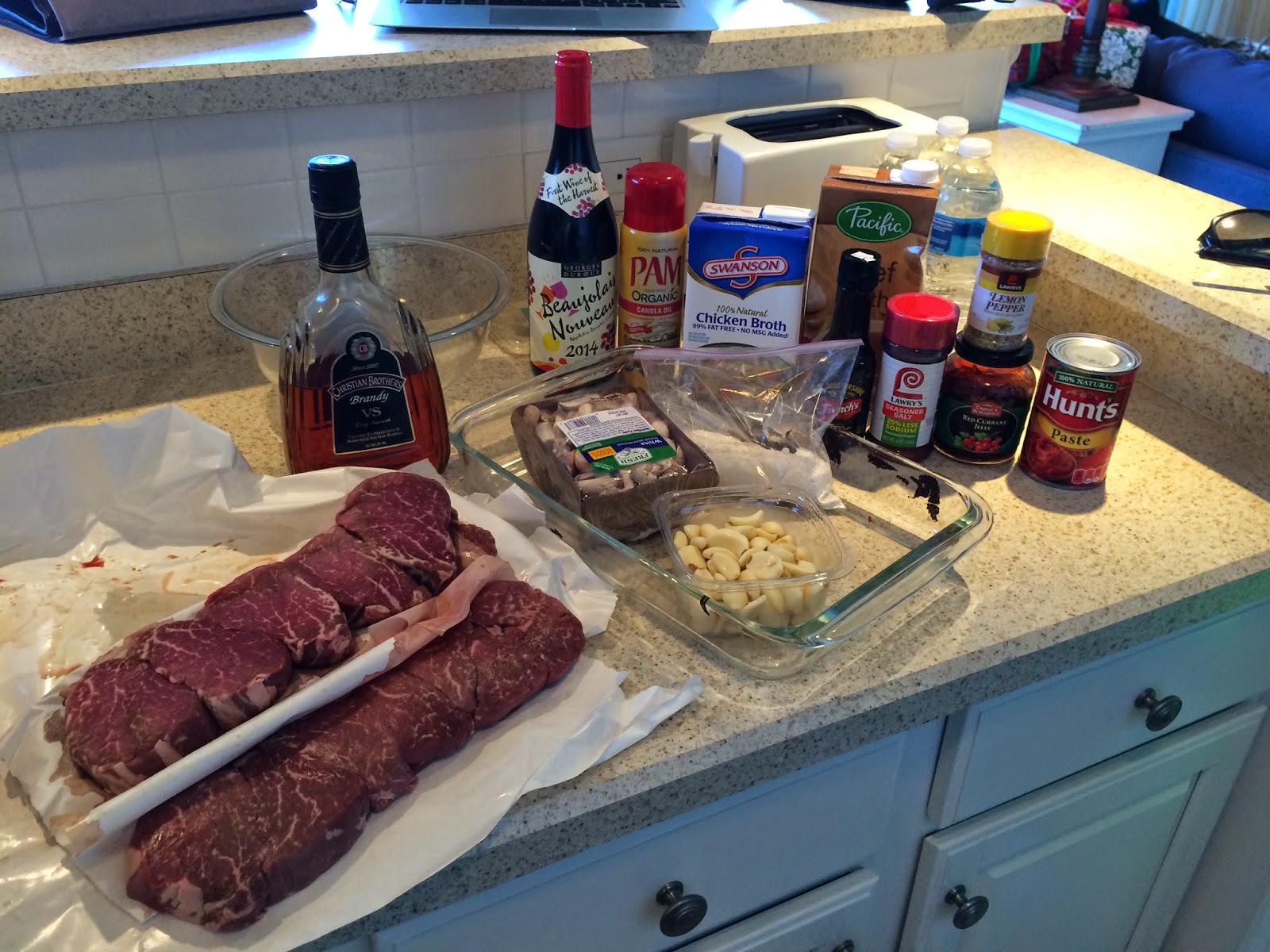 The main course for New Year’s Eve is something I prepared when my son, Ross, committed to play college football at the University of Kentucky, and the head coach at the time (Rich Brooks) came to visit us at our home. He and Steve Brown (who became the Defensive Coordinator) came for dinner. The “steaks” that I served thus and forevermore became known as the “Rich Brooks’ steaks” in our house. The beauty of this dish is that you prepare the steaks the night before, and then just pop them in the oven when you’re ready to enjoy them. That way, you are free from slaving in the kitchen and can mix and mingle with your guests (or thank them for offering a scholarship to your son!).