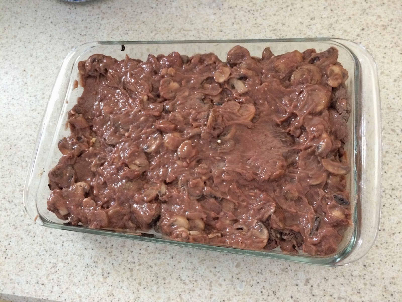 Adjust seasonings. Sauce should be of coating consistency; if too thick, thin with wine. Cool completely. Pour over steaks.