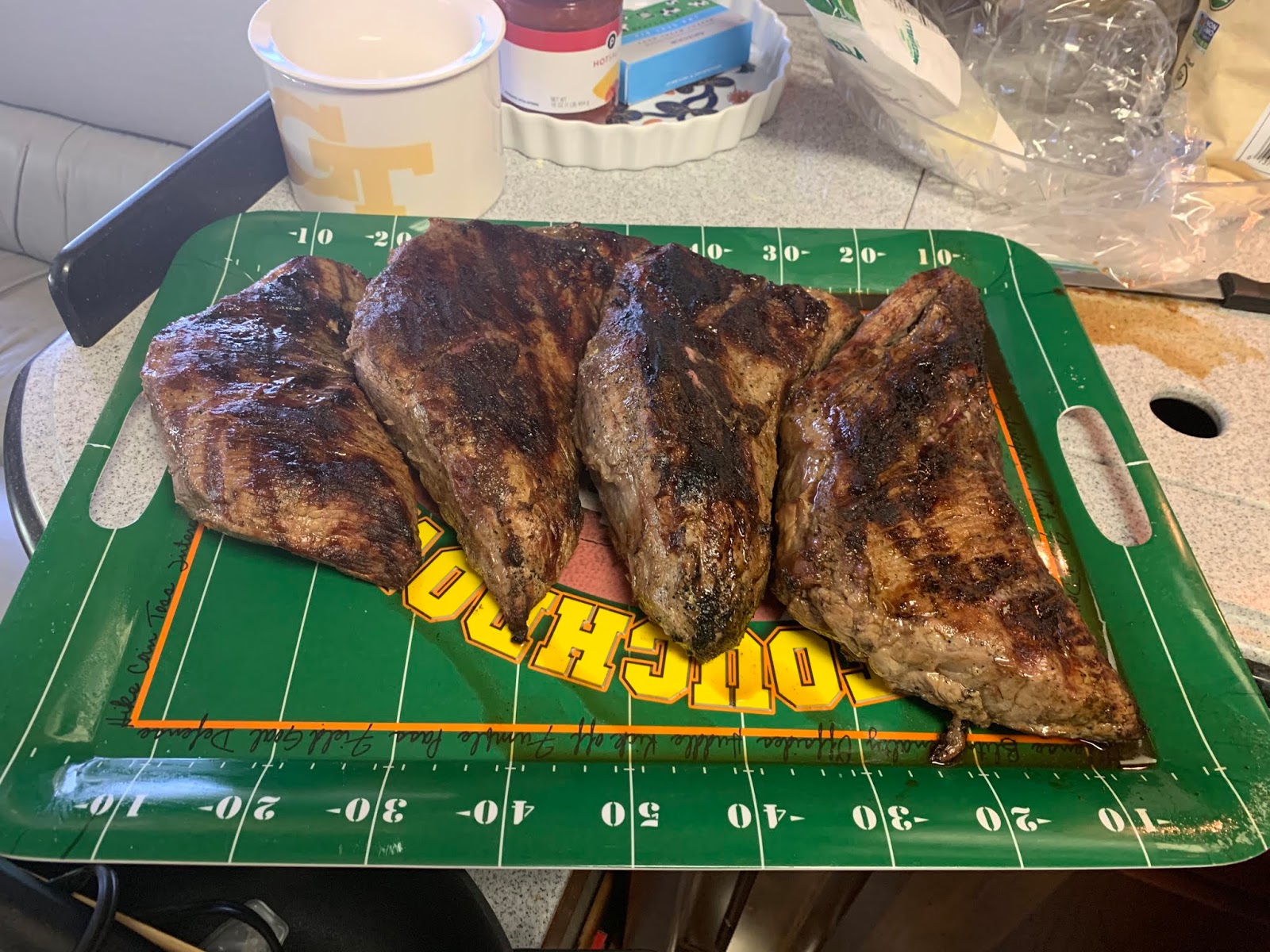 Two 1½-pound tri-tip steaks, sliced crosswise into 1¼-inch-thick planks