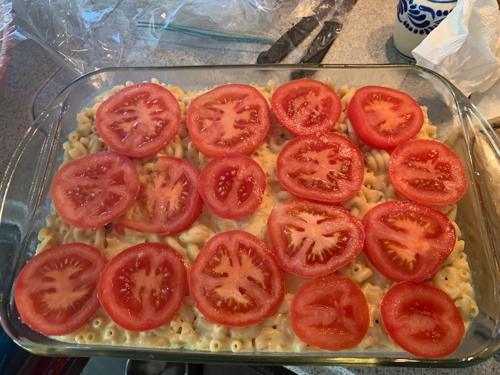 ***To make ahead, put the macaroni and cheese in the baking dish, cover, and refrigerate until ready to bake. Put the tomatoes and bread crumbs on top and bake for about 40 to 50 minutes.