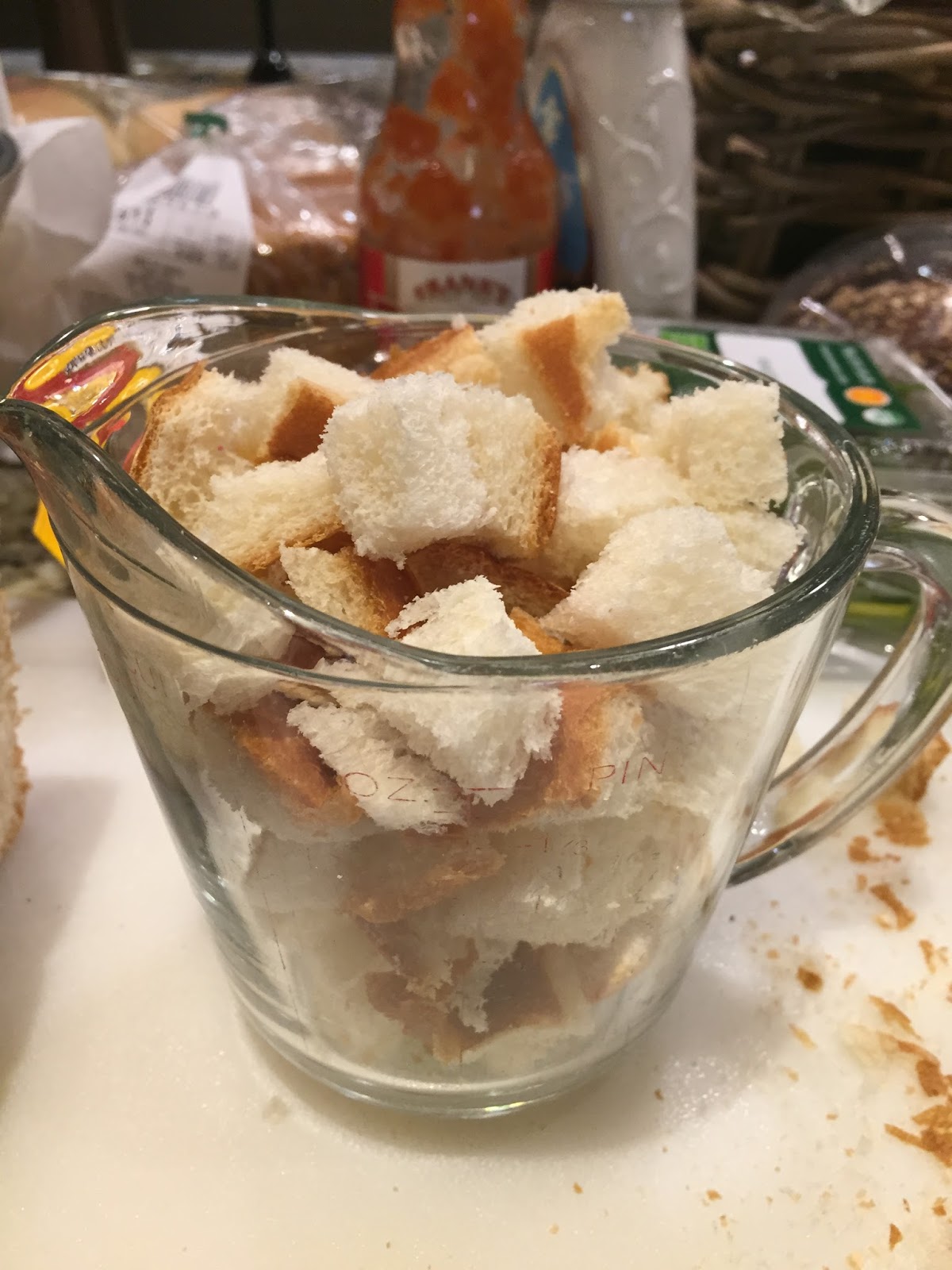 2 cups 1/4-inch-diced white bread (to make croutons)