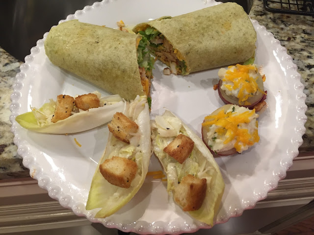 Place each tortilla on a plate, and spread ranch or blue cheese dressing evenly over the surface, leaving about an inch around the edges.
