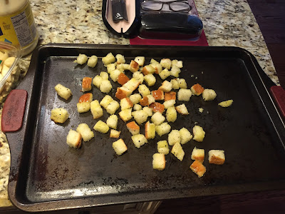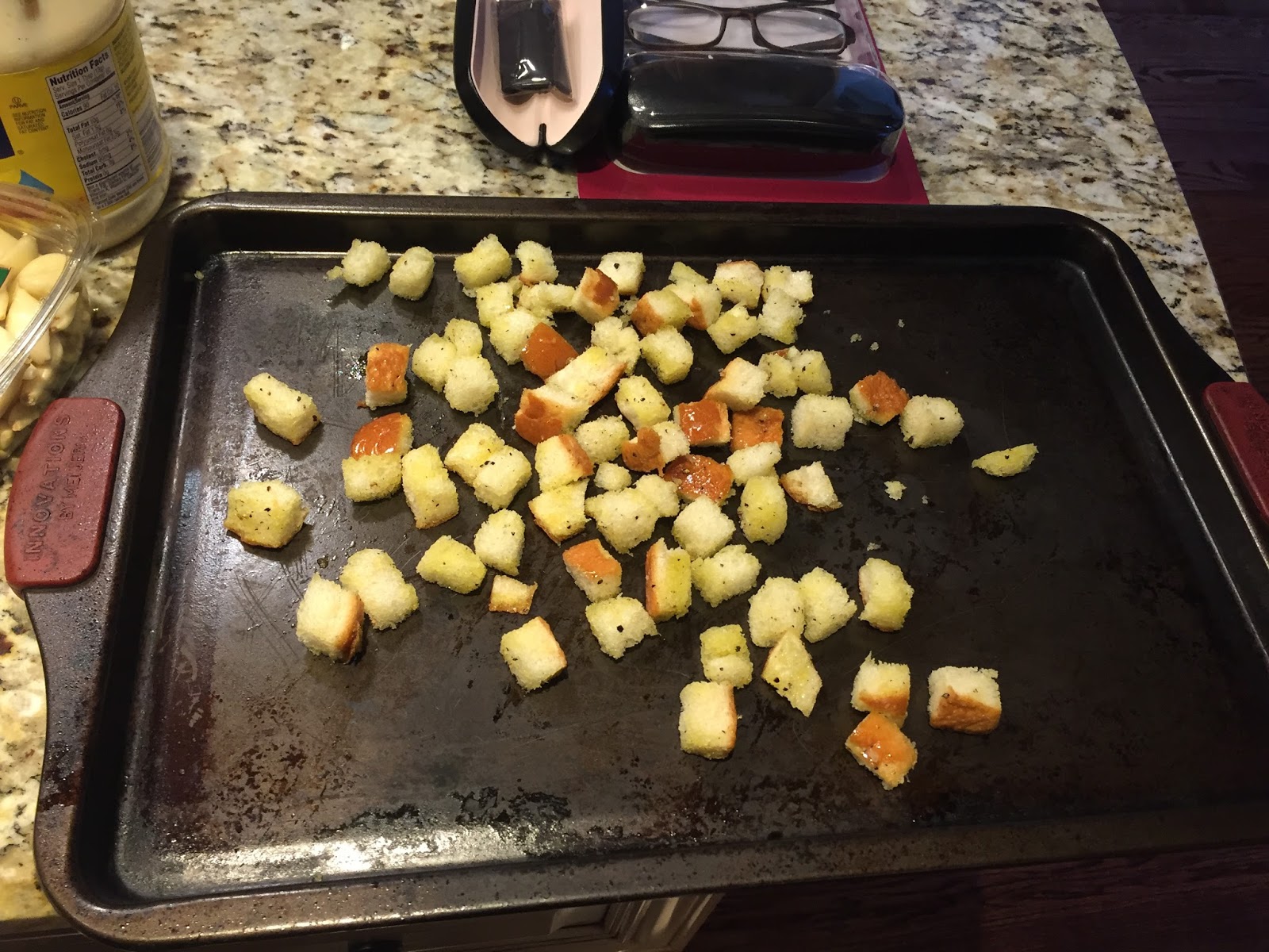 NOTE: You can make the croutons a day or two in advance and keep in a sealed plastic baggie until you’re ready to serve.