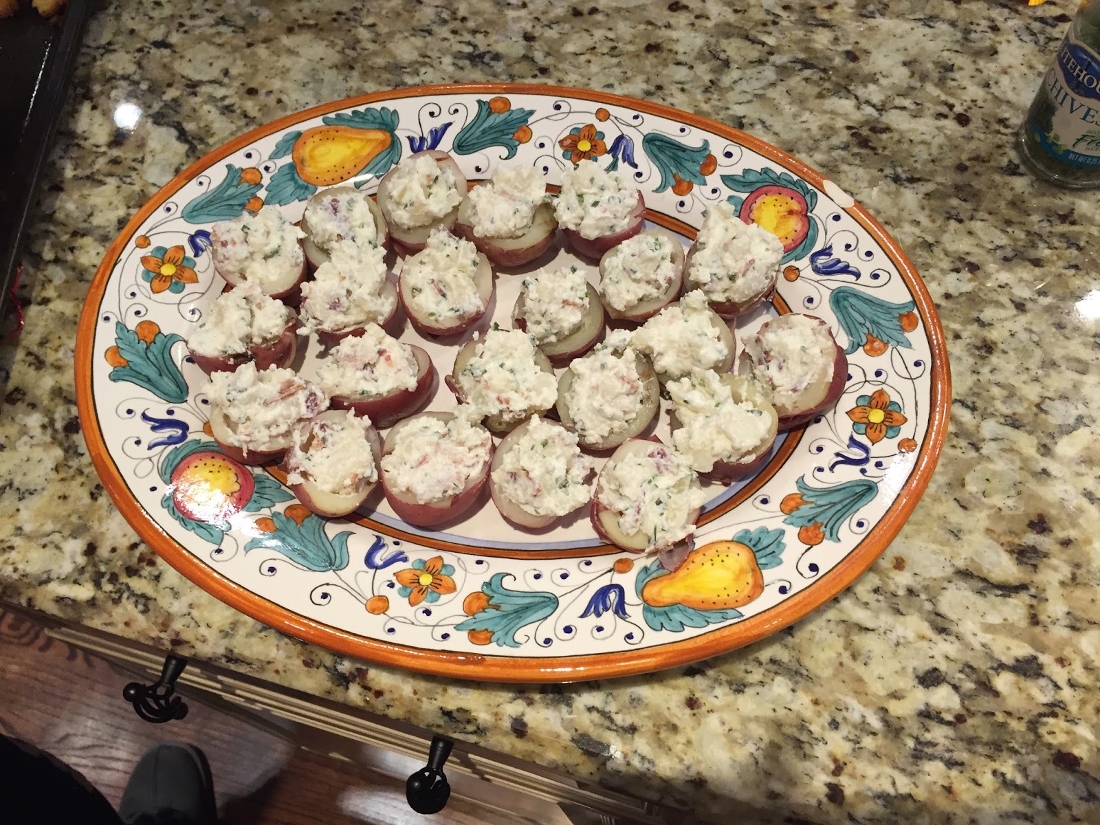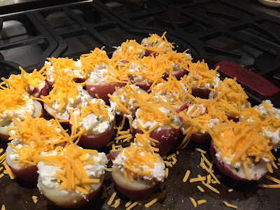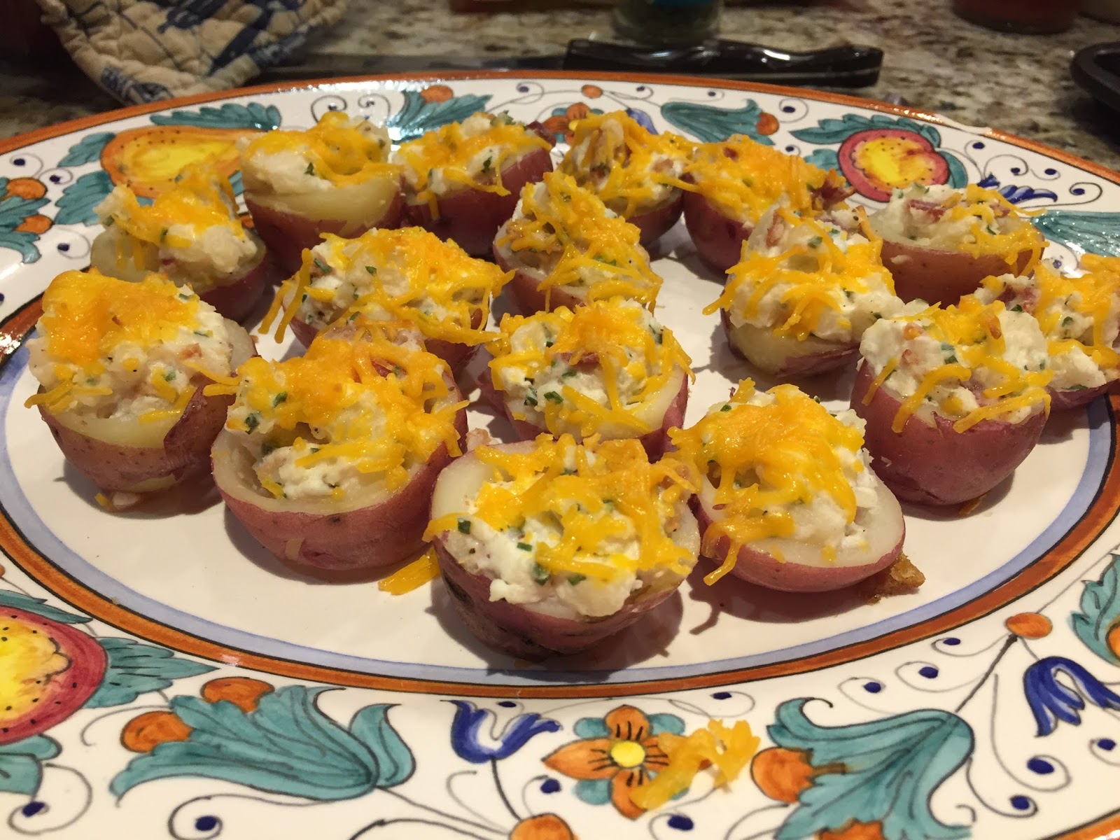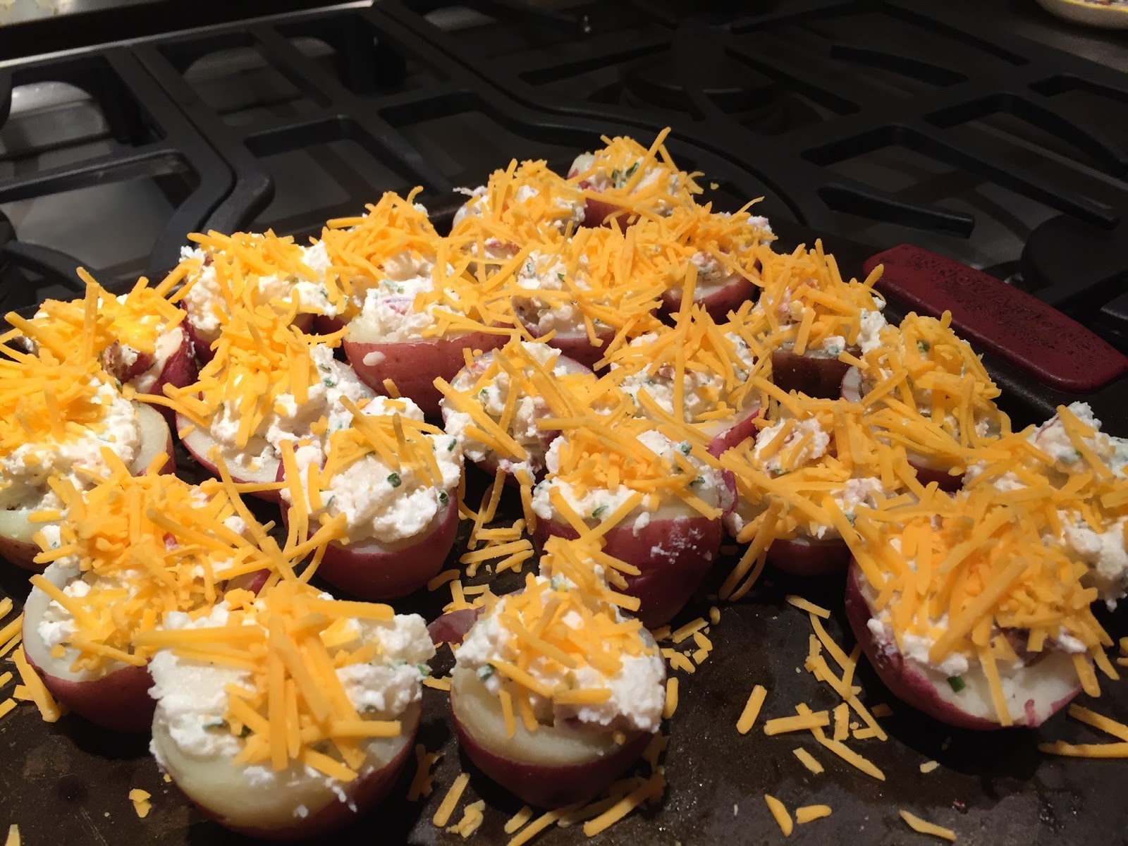 Fold in crumbled bacon and chives. Fill each potato half with sour cream mixture.