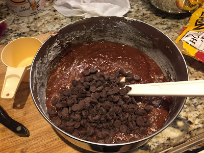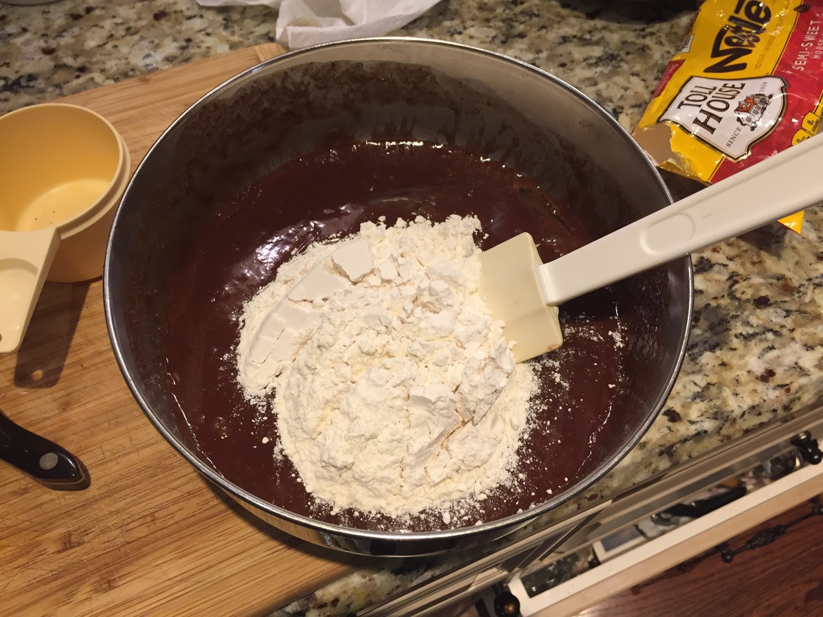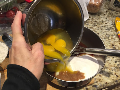 Whisk in sugar, eggs and vanilla. then stir in flour and salt until just combined.