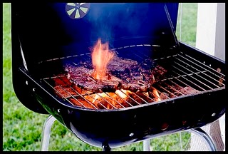 Place tomatoes on med-high heat on grill rack. Cover and cook until tomatoes are soft (but not mushy) ~ 5 minutes.