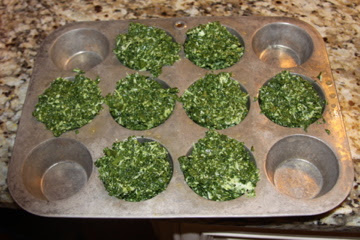 Coat 8 cups of the muffin pan with cooking spray. Divide the spinach mixture among the 8 cups (they will be very full).