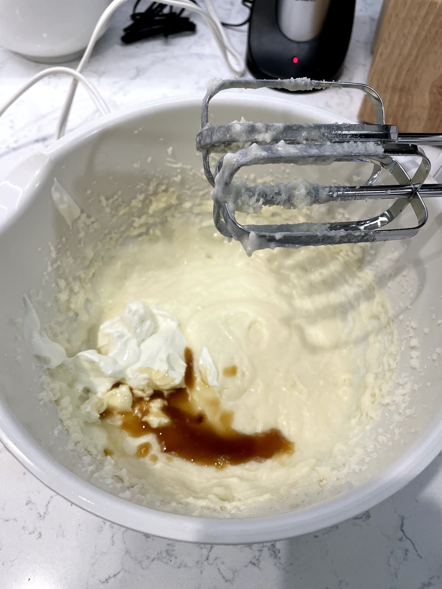 Using a handheld or stand mixer fitted with a paddle or whisk attachment, beat the butter on high speed until smooth and creamy, about 1 minute. Add the sugar and beat on high speed until creamed together, about 1 minute. Scrape down the sides and up the bottom of the bowl with a rubber spatula as needed. On high speed, beat in the egg whites until combined, then beat in the sour cream and vanilla extract.