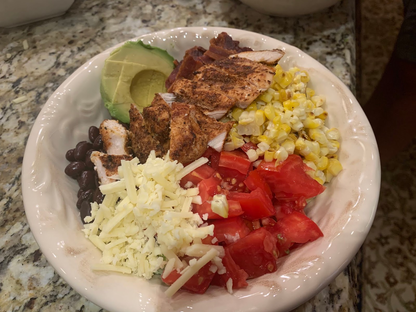 This recipe calls for grilled chicken (which you can always make well in advance) that’s got a spicy Mexican rub on it, and it’s topped with a Jalapeño Buttermilk dressing that has a kick with fresh jalapeños. It’s adapted from one of my favorite bloggers, Closet Cooking.
