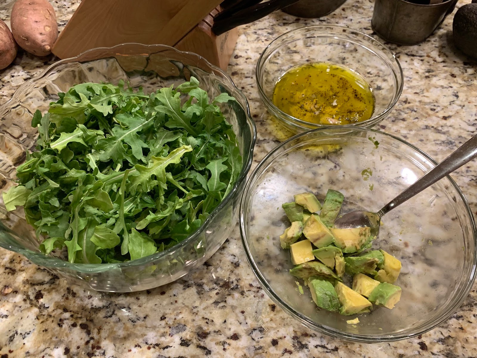 I LOVE salads!  I probably have salad 5 times a week throughout the year, but THIS salad is my favorite hands down.  I adore avocados, blue cheese, lemon vinaigrette and arugula.  Combine those ingredients with rotisserie chicken and applewood smoked bacon and I’m really in heaven.
