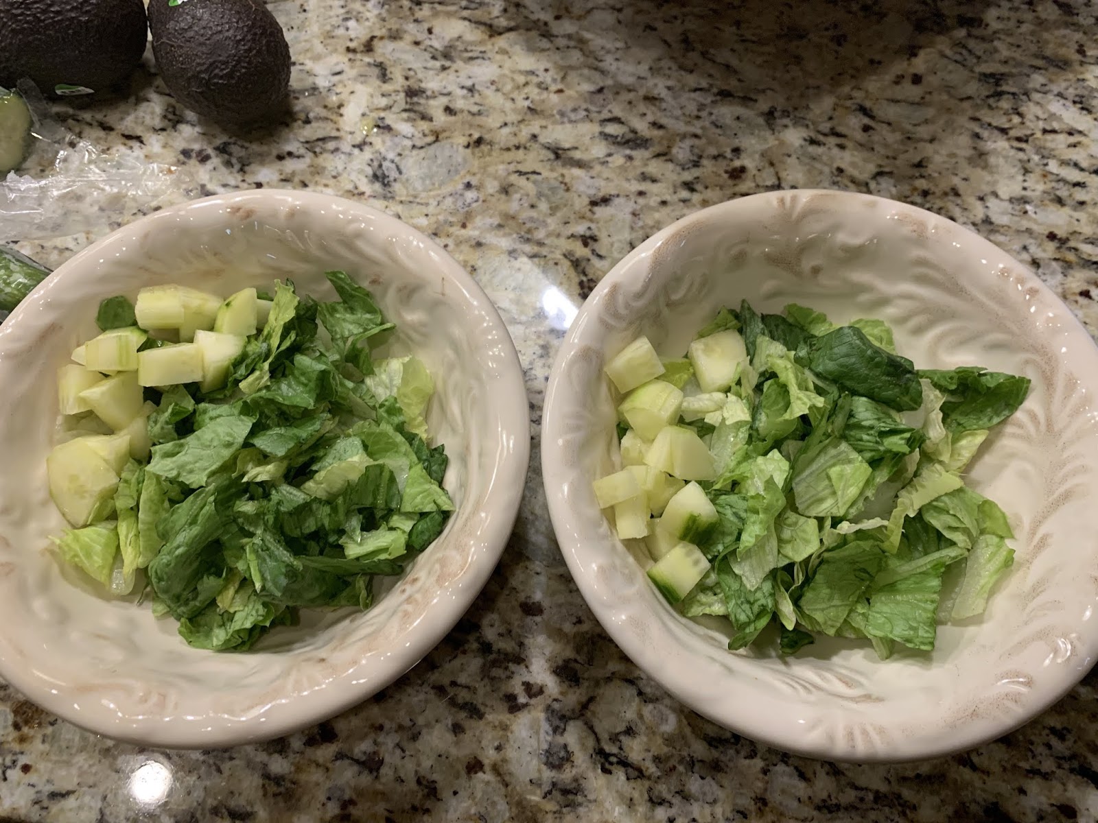 Any other assorted veggies or salad toppings you like such as: shredded carrots, snow peas, toasted walnuts etc.