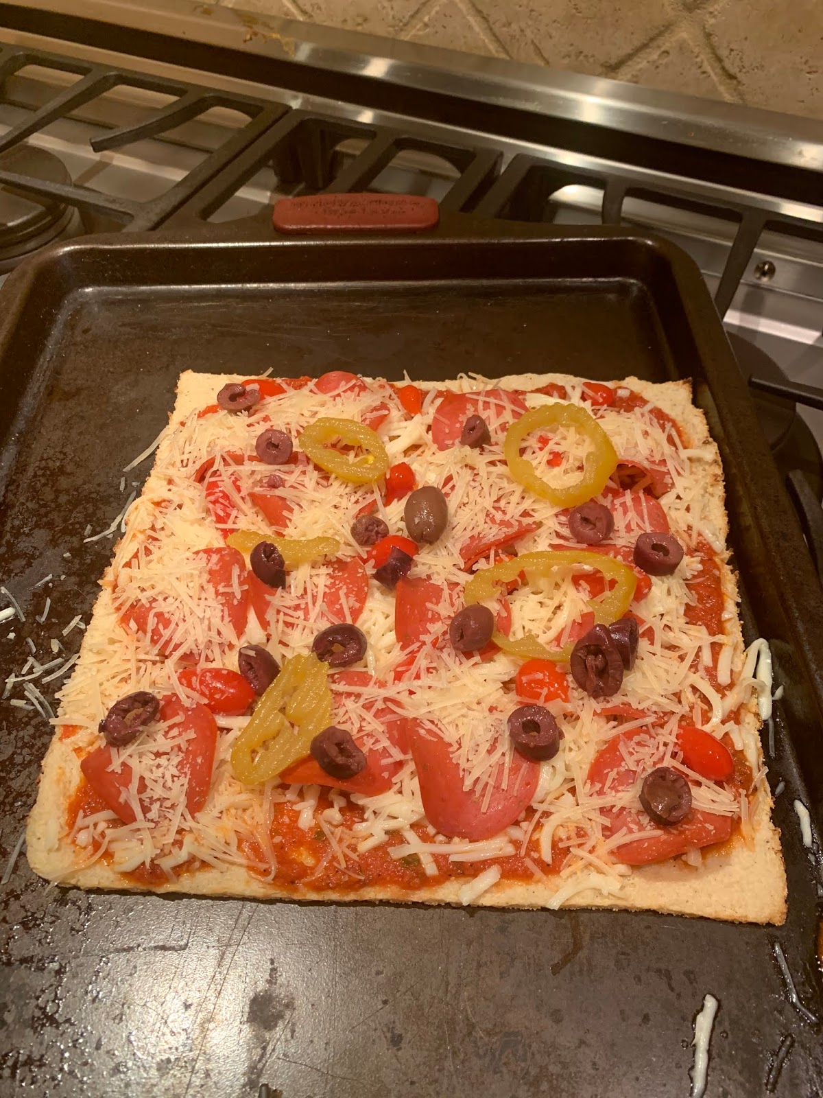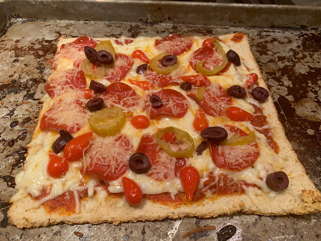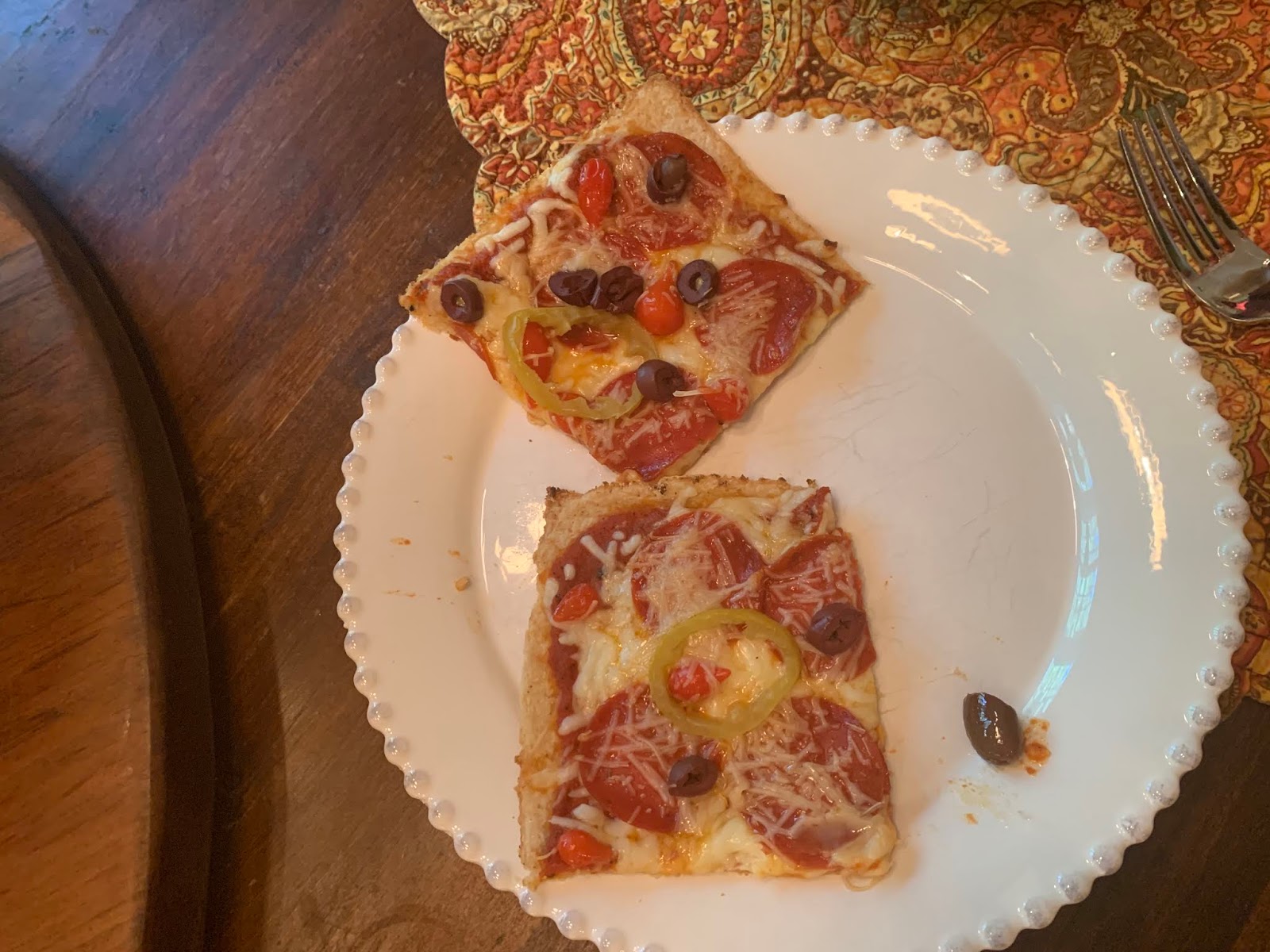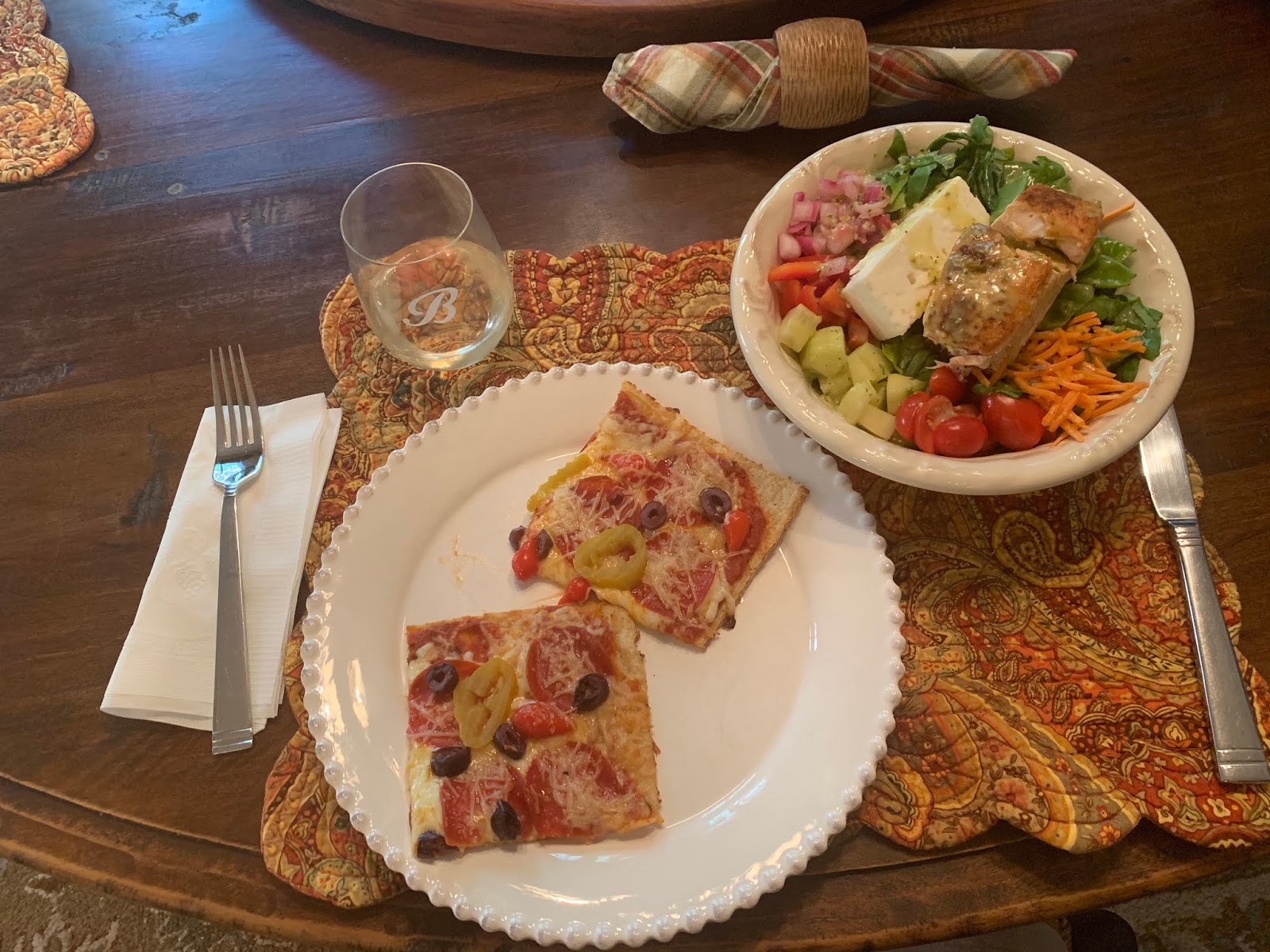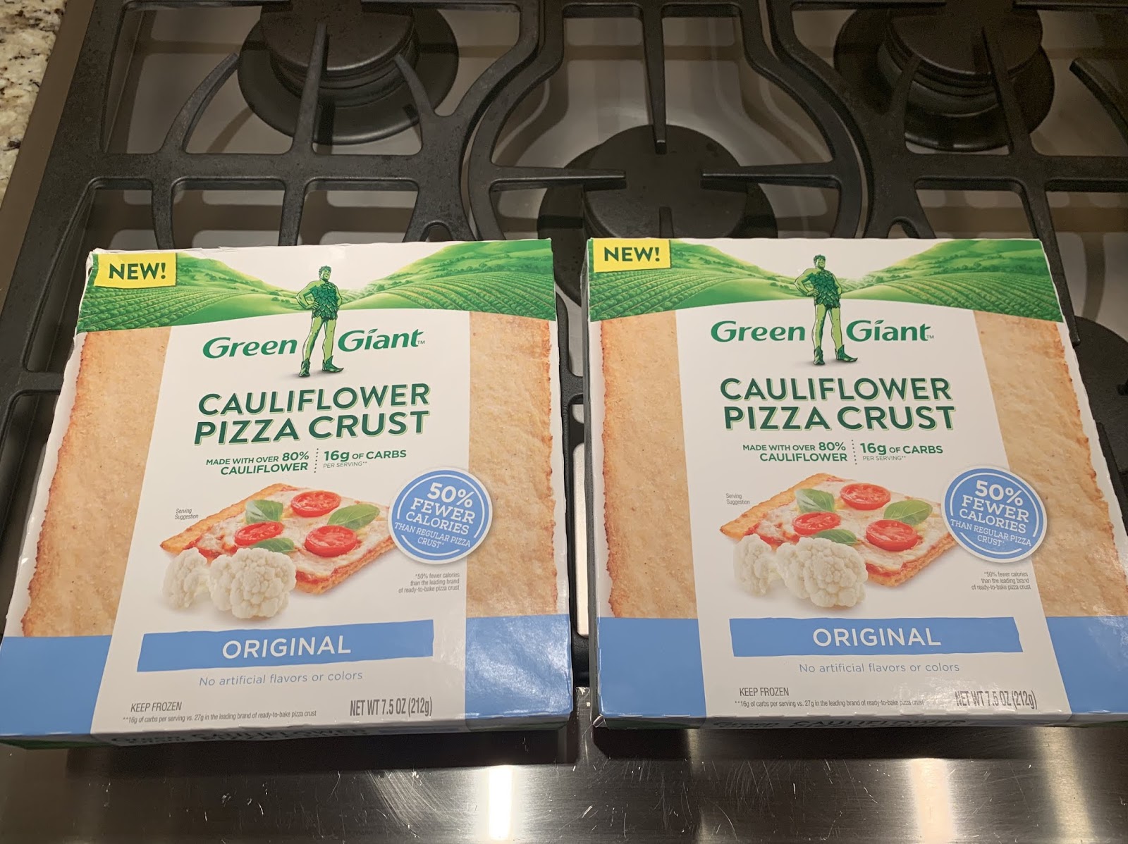 And I had been wanting to try a cauliflower pizza and read a review about Green Giant’s frozen cauliflower pizza being fantastic. So I found it at my local Publix, and I had some leftover tomato sauce, so in a few minutes I had a yummy slice of pizza (or two ;)) to accompany my salad. DELICIOUS!
