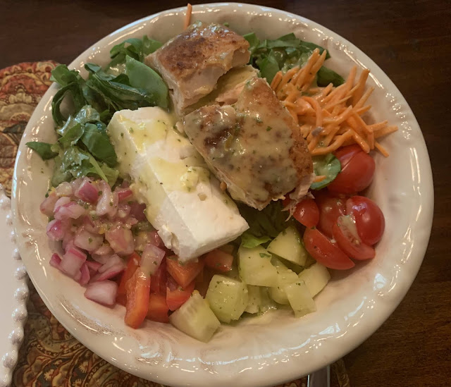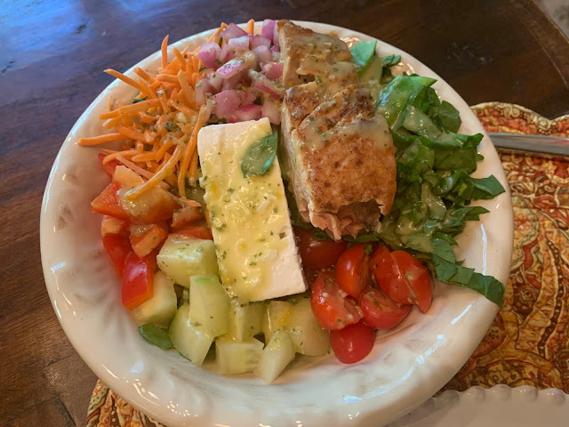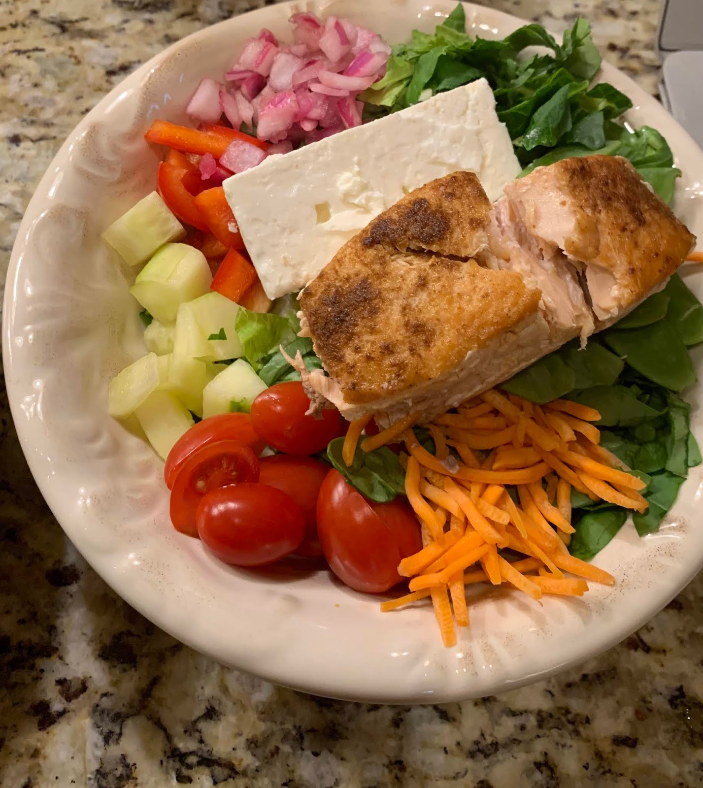You can certainly prepare the salmon and serve it immediately in the salad, or do like I did and enjoy it one night as a meal with sides and the next night or at lunch the next day have it in a salad.