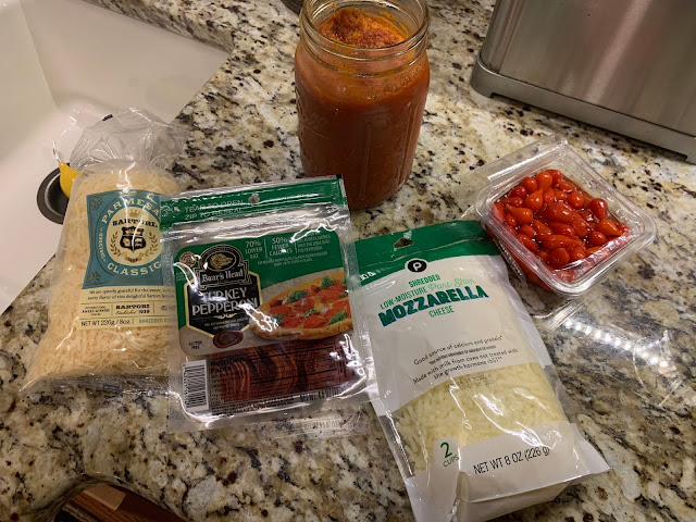 Top with the sauce and mozzarella. Then add whatever toppings you like. Finish with parmesan cheese.