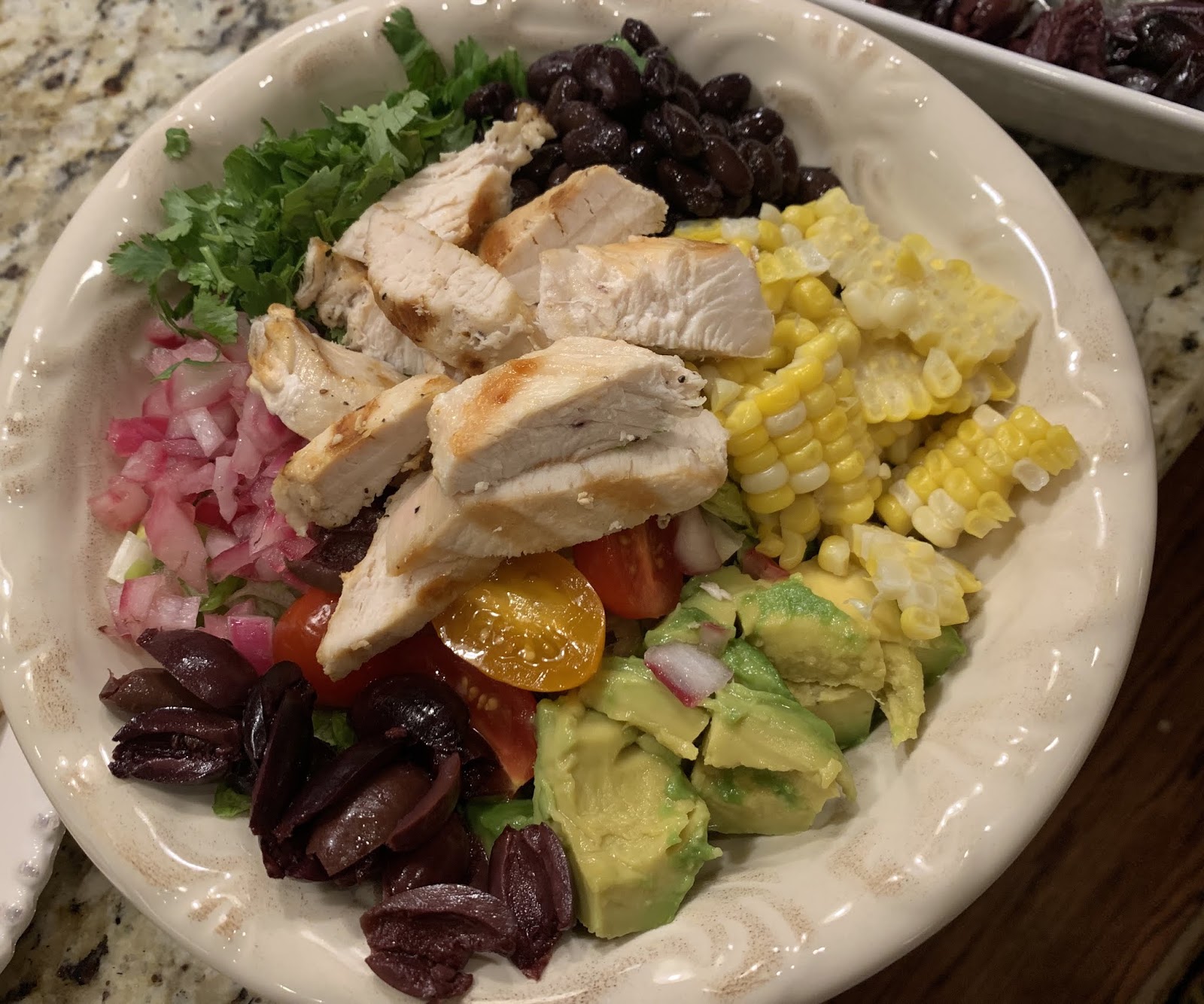 1/4 cup black kalamata olives, slicedChili Lime Vinaigrette Dressing (see below) 1 avocado diced