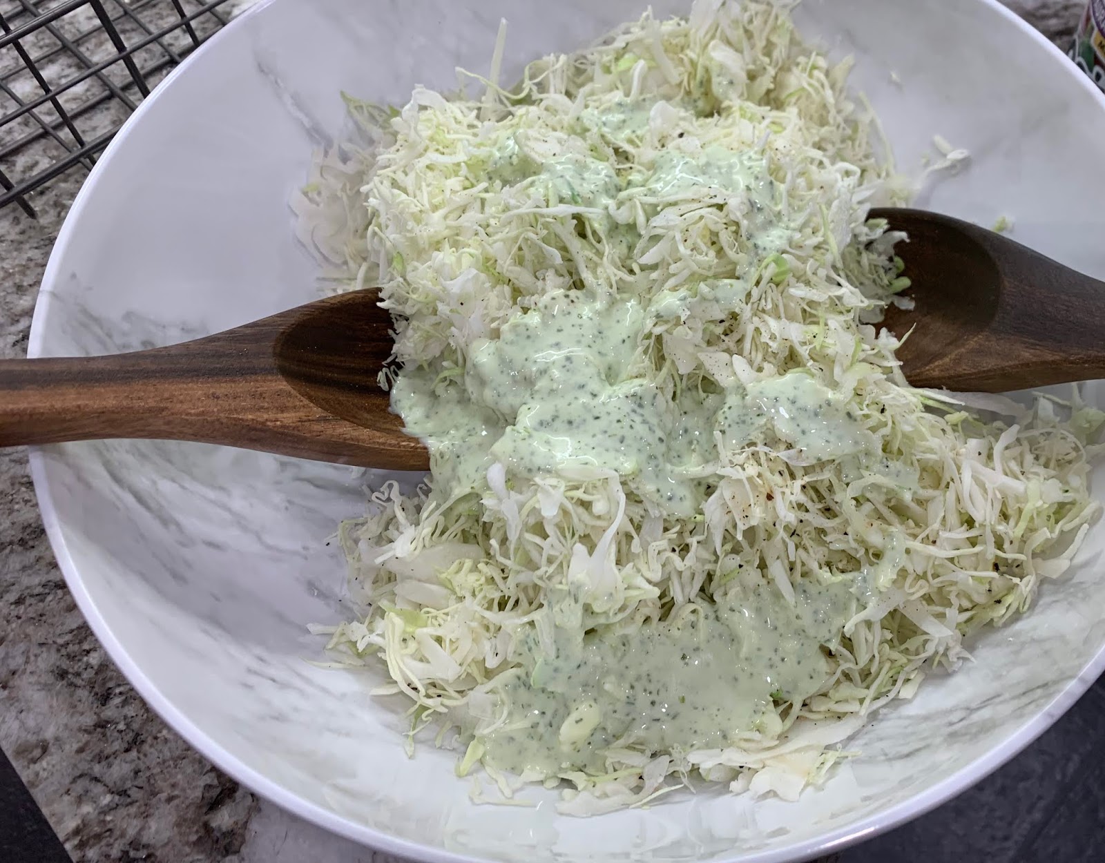 When ready to eat, mix some of the sauce with the cabbage, just to moisten. Set aside remaining sauce to top the tacos.