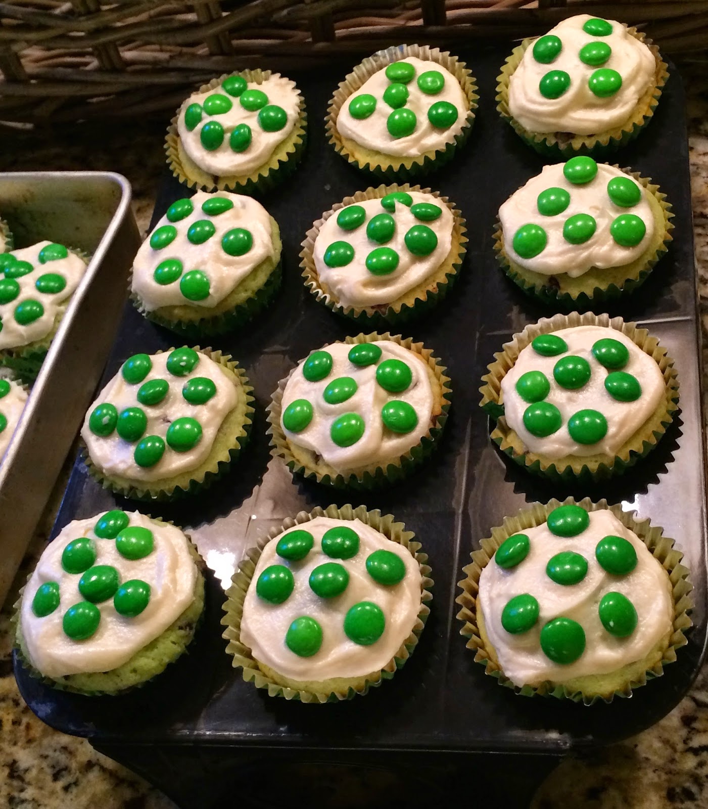 And for decoration you can use anything you’d like. I’m going with green M&Ms, but you can use green sugar or sprinkles or dye the buttercream green with food coloring!