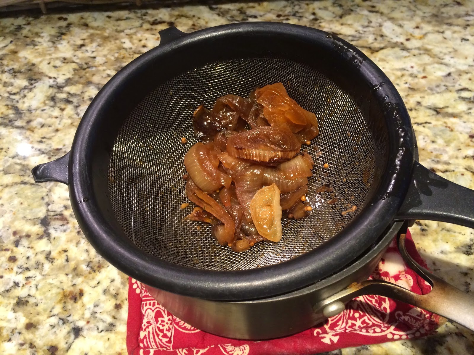 Set the corned beef aside, strain the solids from the Guinness and juices.