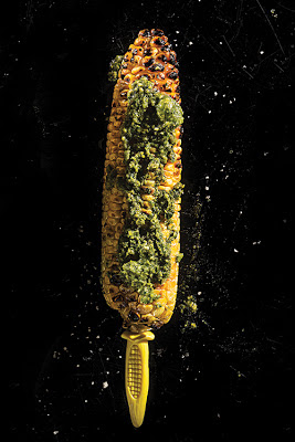 Heat a charcoal grill or set a gas grill to high; bank coals or turn off burner on one side. Brush corn with pesto and grill until kernels are slightly charred and tender, 8-10 minutes.