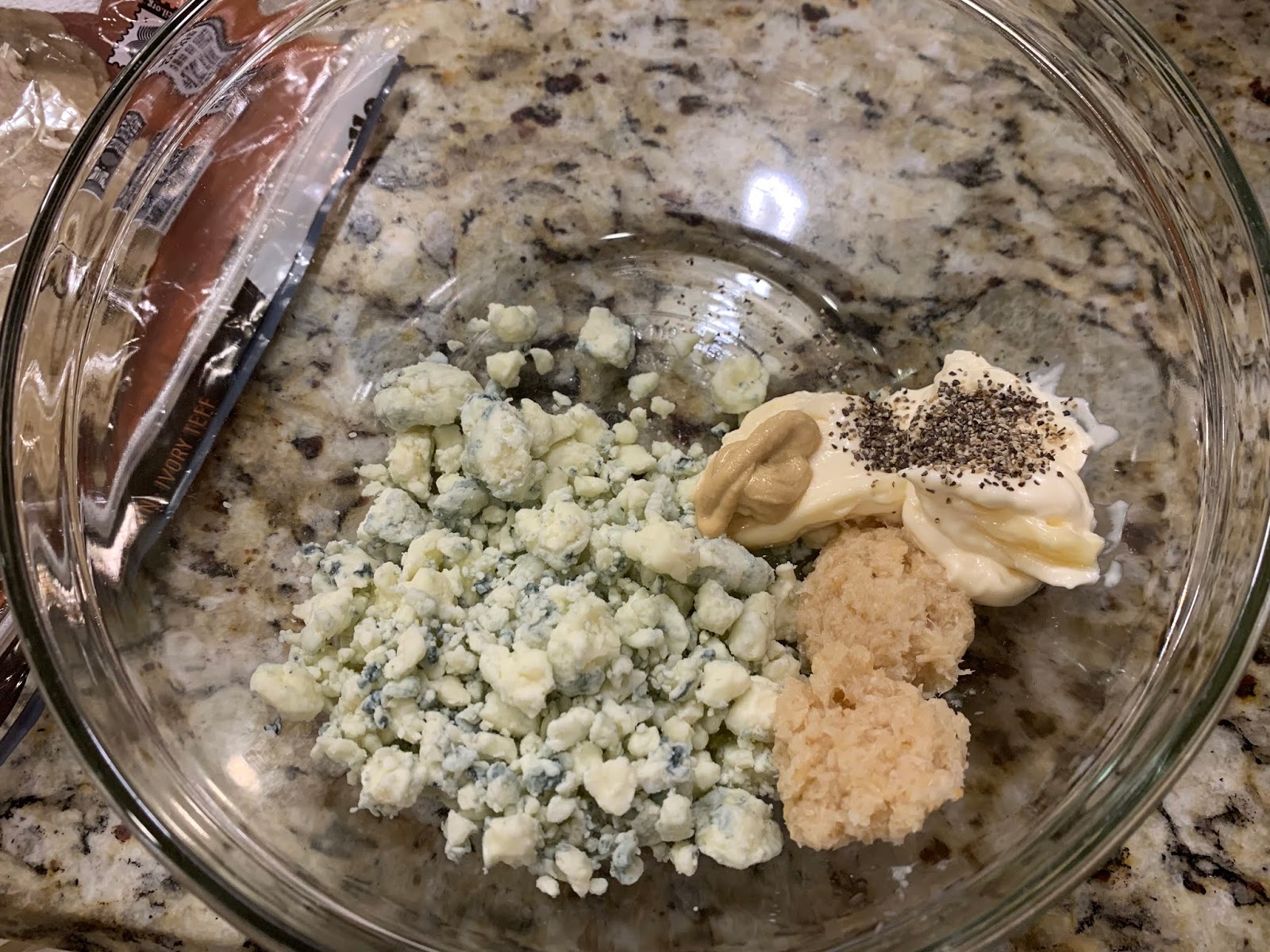 Combine blue cheese, horseradish, mayonnaise, salt and 1/4 teaspoon pepper. Adjust salt and pepper to taste.