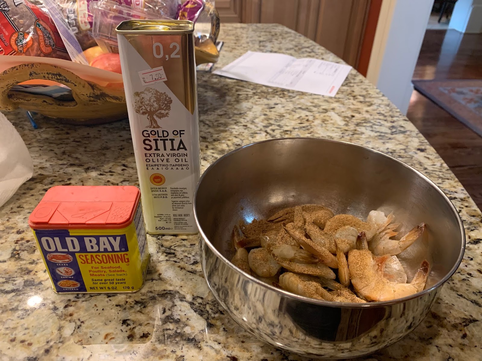 Place the shrimp in a bowl and toss with the olive oil, Old Bay and lemon juice. Arrange the shrimp in a single layer on a baking sheet.