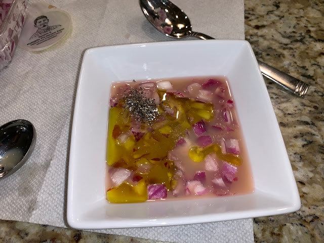 In a small bowl combine red onion, lime juice, olive oil, salt and pepper. Let them marinate for ~ 5 minutes.