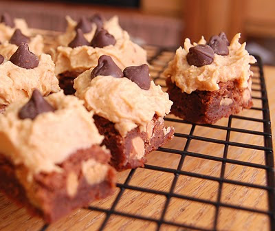 Over a double-boiler or in the microwave (with 1-2 TBSP of water), melt the chocolate chips. Stir, then spread over peanut butter mixture. Chill in refridgerator for about an hour. Allow to come to room temperature before cutting into squares. Store in refridgerator. Adapted from Paula Dean. ENJOY!