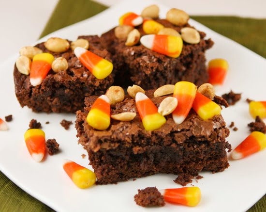 Prepare brownie mix according to package directions using an 8×8 pan. Within 3 minutes of pulling brownies out of the oven, pour candies and peanuts over top of the brownies. Push on them lightly so they sink into the soft brownies. Let cool and cut into squares.