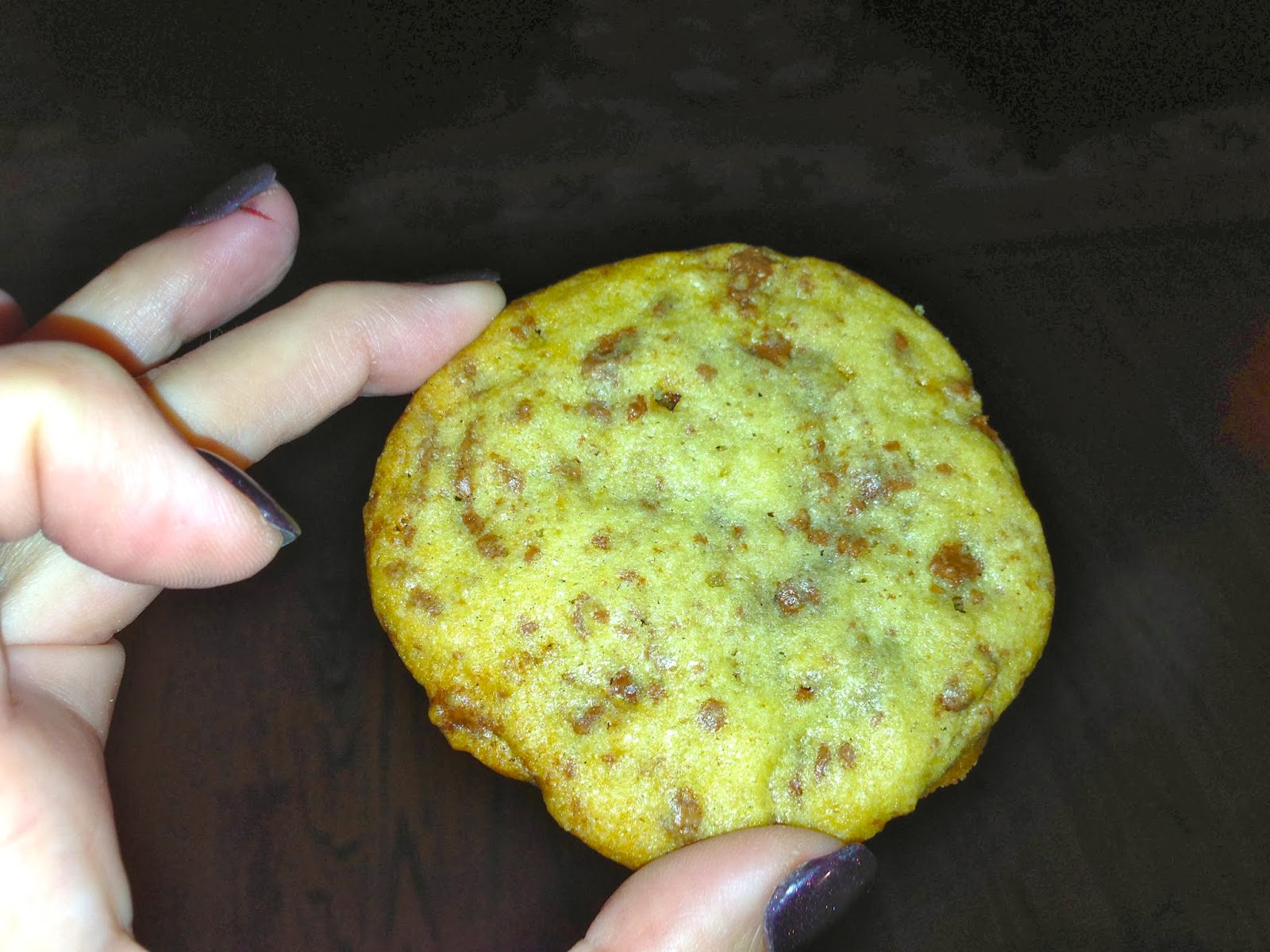 Chill in the refrigerator for about an hour before baking. Doing this step will significantly help with the cookies NOT spreading out all over the pan. Once chilled, scoop out small (tablespoon) amounts onto a baking sheet, and bake at 350 degree for 10-12 minutes until edges are golden brown and center is set. Makes about 3 dozen.