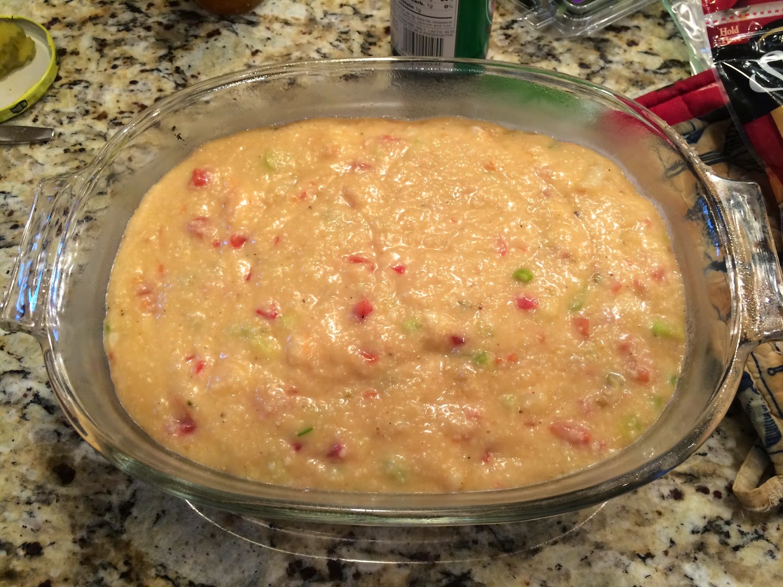 This recipe is great! I love that it’s not too rich – some shrimp and grits recipes are just too too much cream and/or cream cheese for me. There’s none of that here. It’s got cheddar and jalapeño jack cheeses but the secret is the chicken broth for giving it great flavor. The original recipe called for green pepper as well, but I’m not a fan of those, so I left it out. Another nice thing is that this dish can be made in advance – I made everything the day before, and then I simply popped it in the oven when I was ready – may need to cook a bit longer if you’re taking it directly from the refrigerator to the oven.