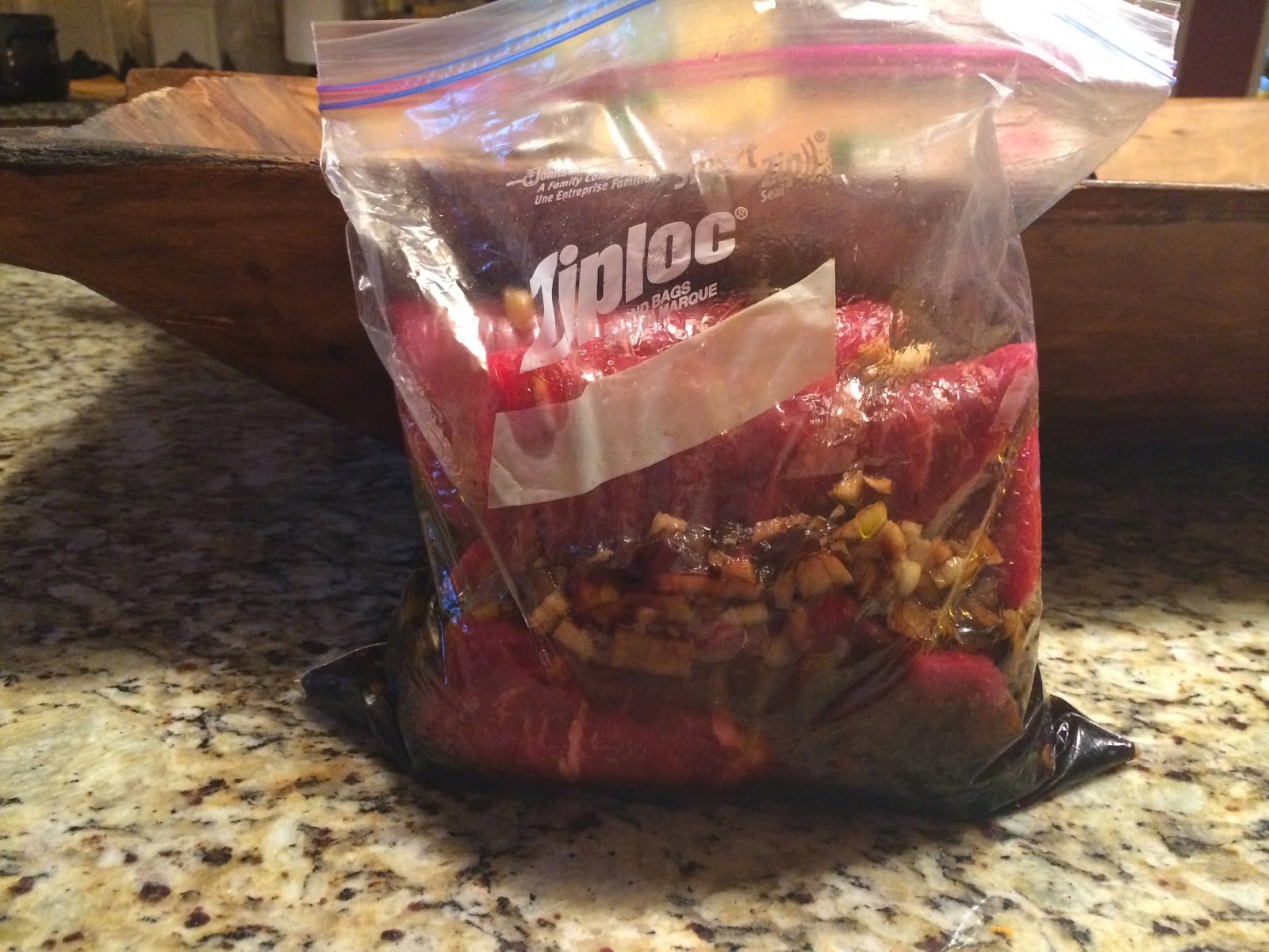 Pour over steaks, turning to coat. Cover or seal and allow to marinate 8-12 hours (or overnight), turning occasionally.