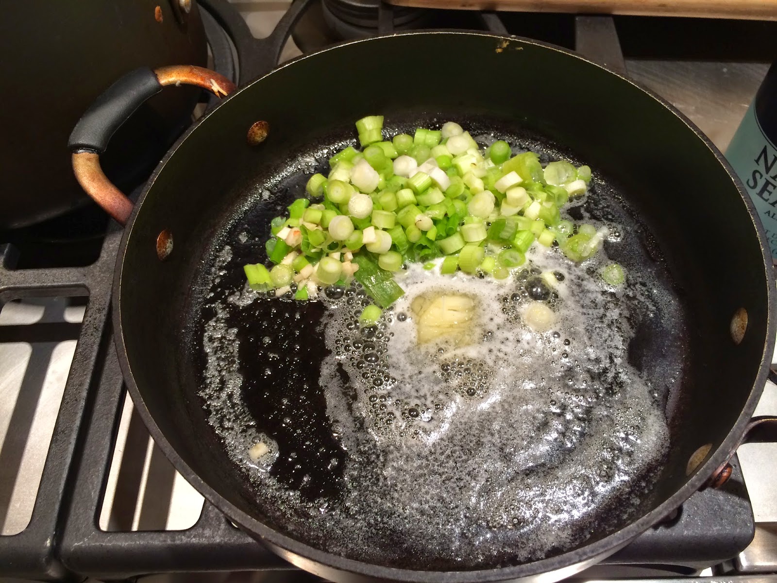 Cover, reduce heat, and simmer 20 minutes. Stir together grits, 3/4 cup Cheddar cheese, and Monterey Jack cheese. Melt butter in a large skillet over medium heat; add green onions and garlic, and sauté 5 minutes or until tender.