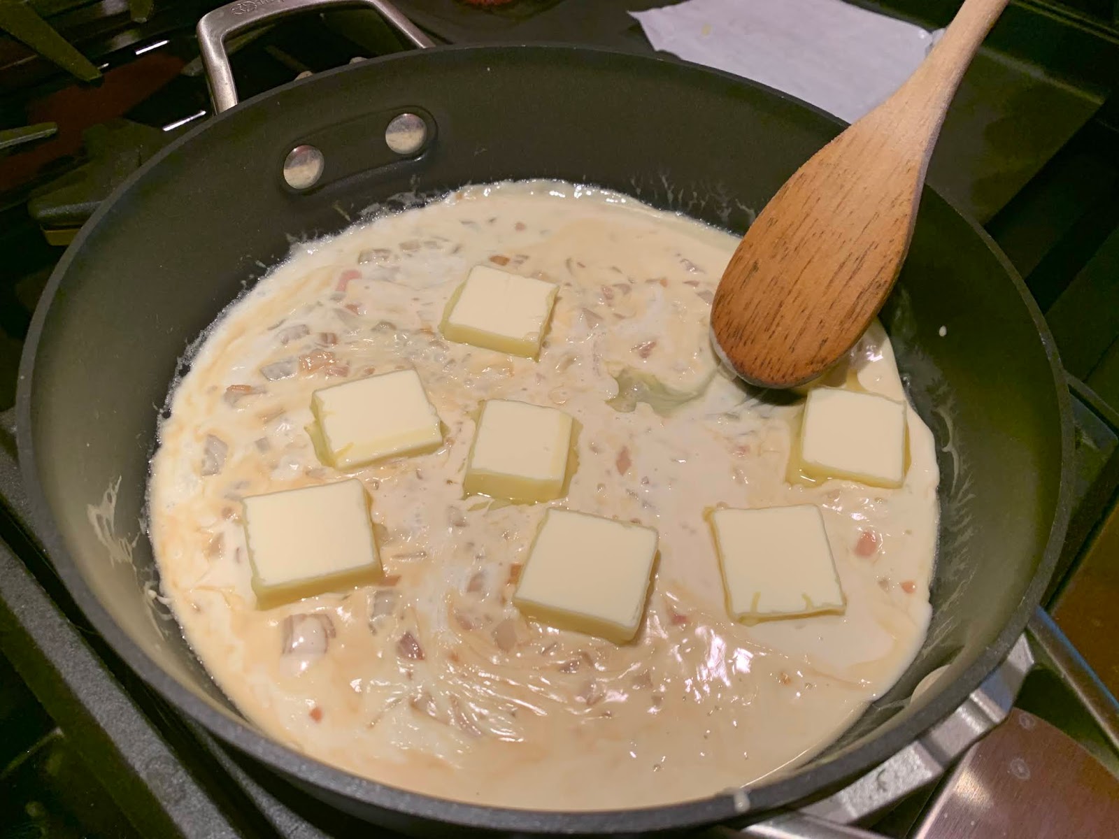 Add cream, reduce for 5-6 minutes or until it thickens a bit.